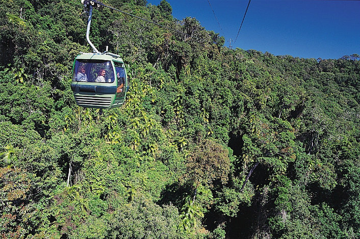 Skyrail is the World's Most Beautiful Rainforest Experience. A 7.5km cableway, Skyrail glides just metres over the canopy of Australia's World Heritage listed Tropical Rainforests. Two mid-stations, Red Peak and Barron Falls, provide the perfect opportunity to explore and learn more about this ancient environment on boardwalks and at the Rainforest Interpretation Centre.